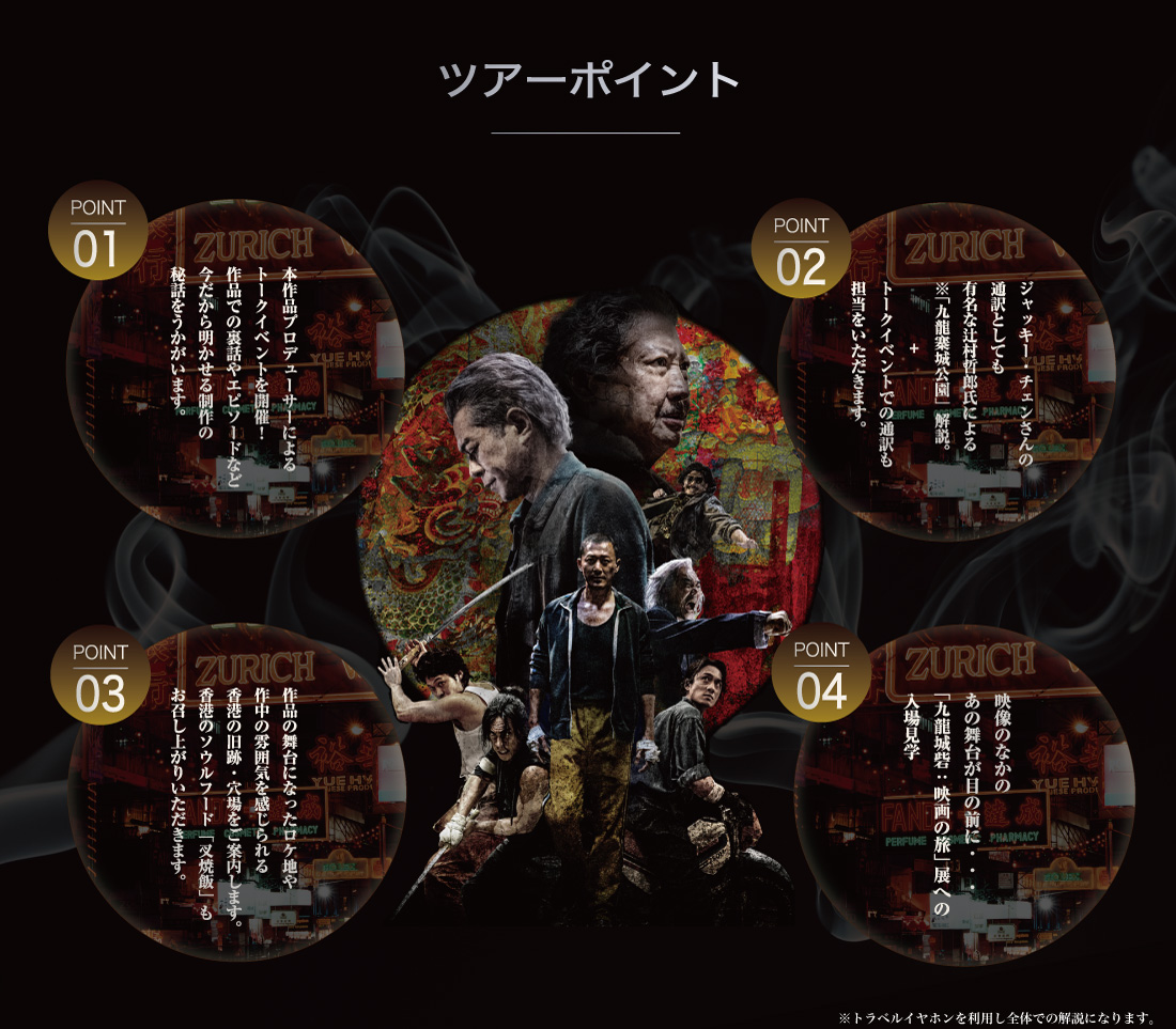 専用バスにて映画の旅展へ ◆「九龍城砦:映画の旅展」入場・見学 ◆辻村哲郎氏による「九龍寨城公園」解説・入場見学 ◆映画にも出てきた「又焼飯」を召し上がっていただきます。