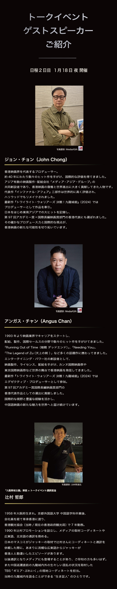 ◆「トワイライト・ウォリアーズ 決戦!九龍城砦」 トークイベント ・ホテルにて「トワイライト・ウォリアーズ」のプロデューサー ジョン・チョンさん、 (香港泊) |