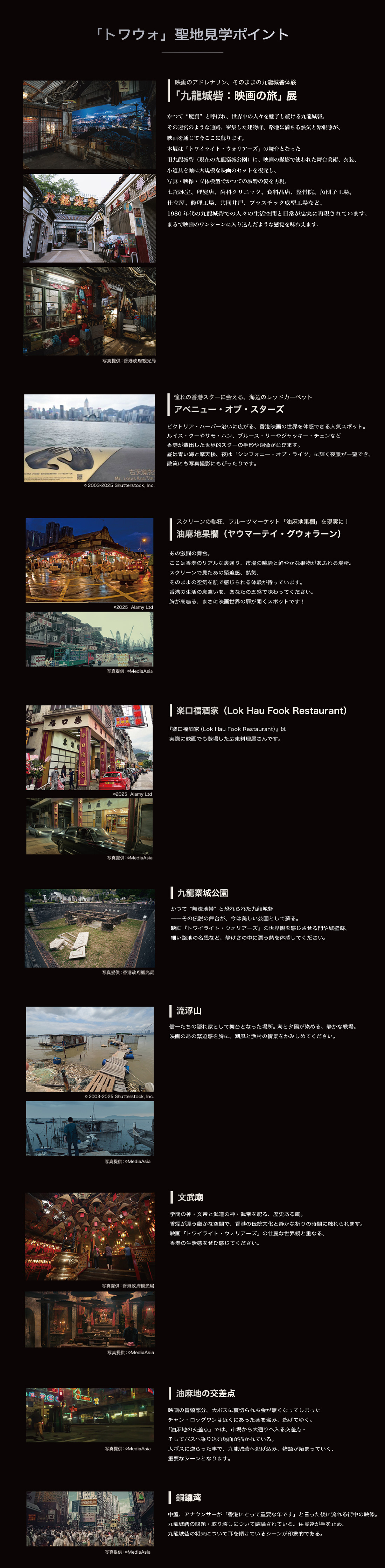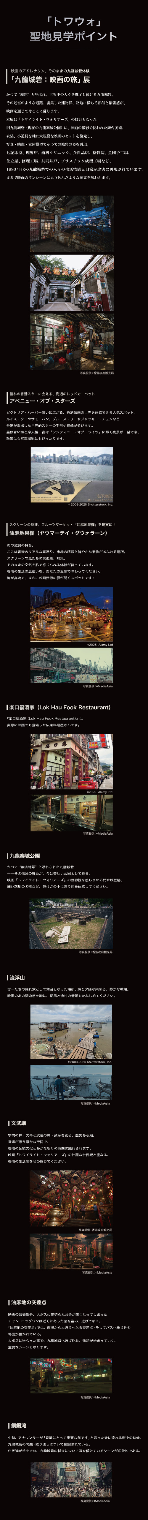 ◆「トワイライト・ウォリアーズ 決戦!九龍城砦」 聖地探訪・見学 ・アベニュー・オブ・スターズ(下車見学) ・油麻地果欄・油麻地の交差点(下車観光) ・楽口福酒家(下車見学)