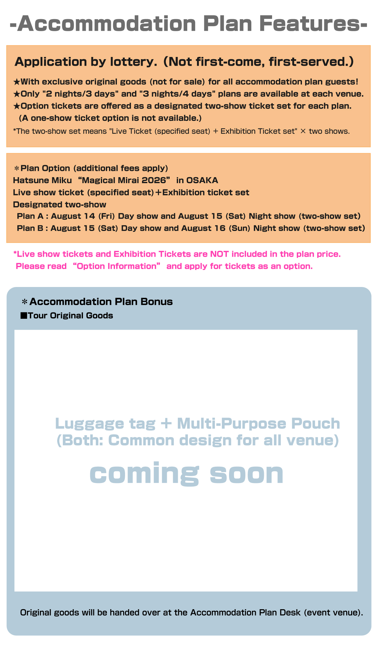 *The Option ticket set includes the exhibition ticket for Hatsune Miku “Magical Mirai 2026” in OSAKA.